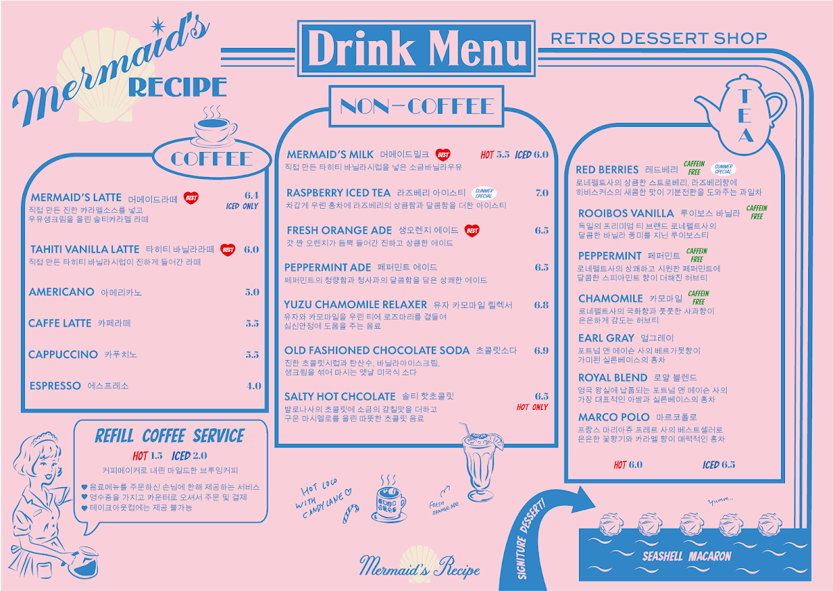 Welcome to Mermaid’s Recipe, a delightful café nestled in Gwangju-si, Gyeonggi-do, that resonates with a playful 1950s Americana theme. This charming spot, reminiscent of a cozy American home, is known for its expertly crafted classic desserts and treats. Visitors rave about the whimsical, kitschy décor that creates an inviting atmosphere, perfect for indulging in desserts like cakes and cookies. Although some desserts may be on the sweeter side, the overall selection is beloved by many.
